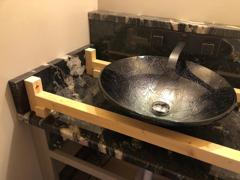 It usually gets centered behind the sink about 2 to 4 inches from the edge but it can go anywhere provided there s enough room for it. Wall mount faucets can be used with your vessel sink provided you have a wall mounted valve and drain. Bathroom applications generally have 1 or 3 holes located in the rim or deck of the sink the countertop or the wall above the sink. The same rules apply with height and placement.