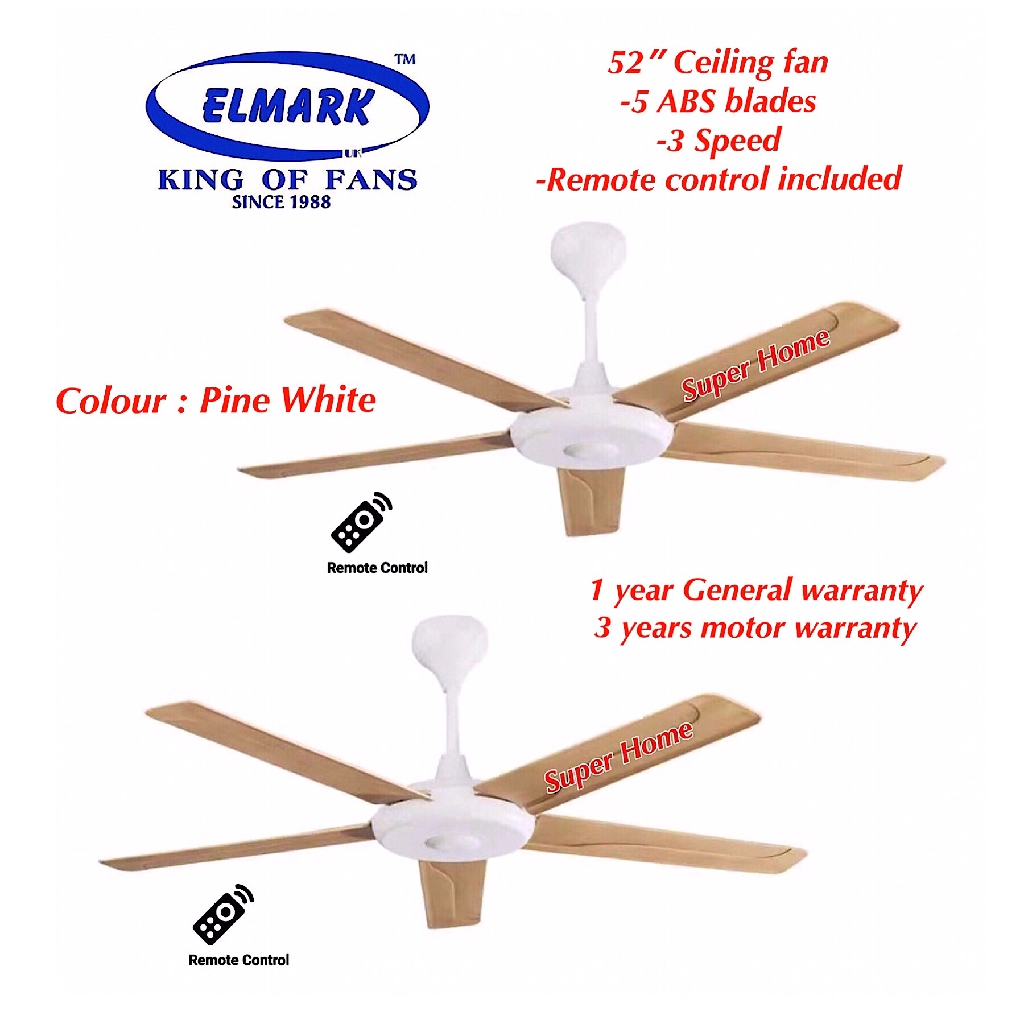 2pcs Pack Elmark Ceiling Fan Kl101 52 5 Blades Remote Control White Pine Colour Shopee Malaysia